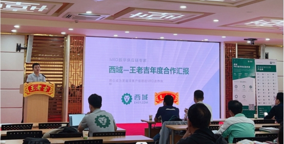 第二環節,西域公司銷售部經理馬光耀回顧了2023年與王老吉藥業電商采購業務開展情況,針對下一階段重點工作安排進行分享,詳細介紹西域數字化解決方案是如何幫助王老吉藥業實現降本增效,提交交付效率,在訂單、交付、物流、發票等各環節實現智能運維與綜合管理,最終實現線上流程閉環。